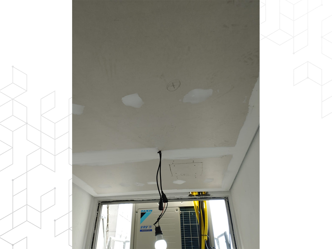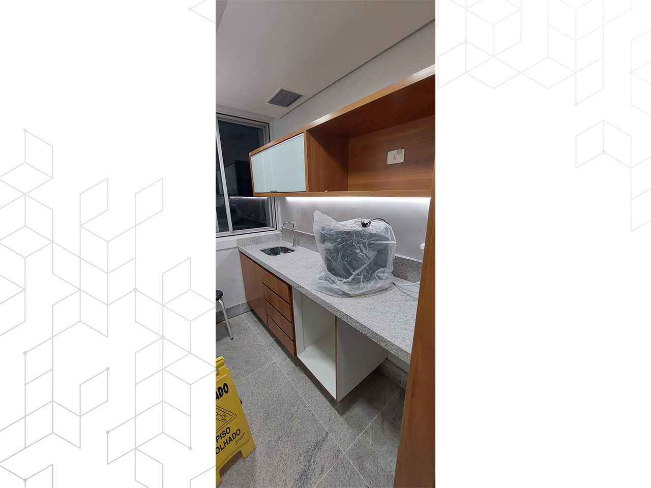 Para garantir o conforto térmico, criamos uma base estrutural para a condensadora do ar condicionado, ancorada firmemente na estrutura do prédio. Cada detalhe foi planejado e executado meticulosamente, resultando em um ambiente que combina estética, funcionalidade e segurança de forma harmoniosa.
