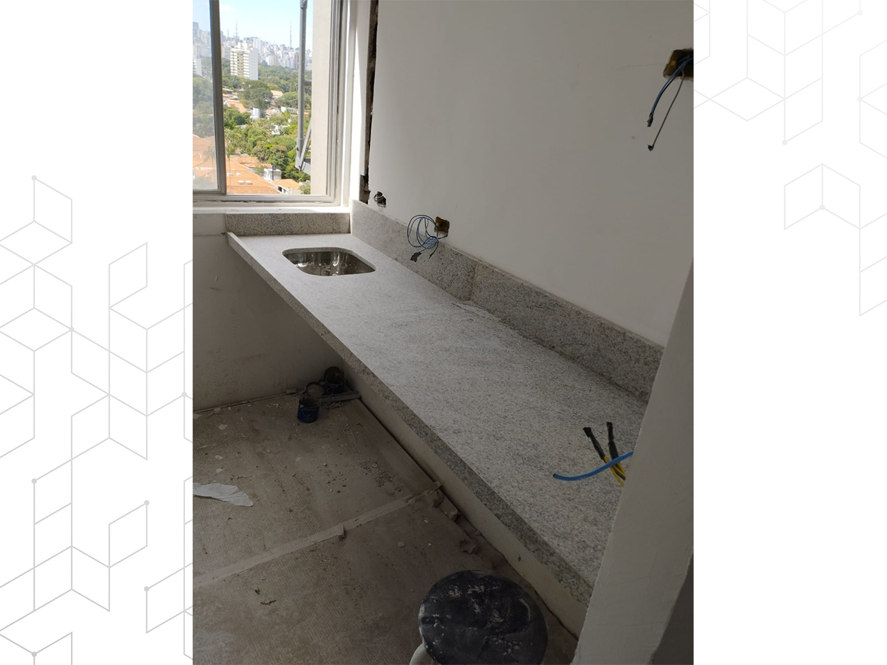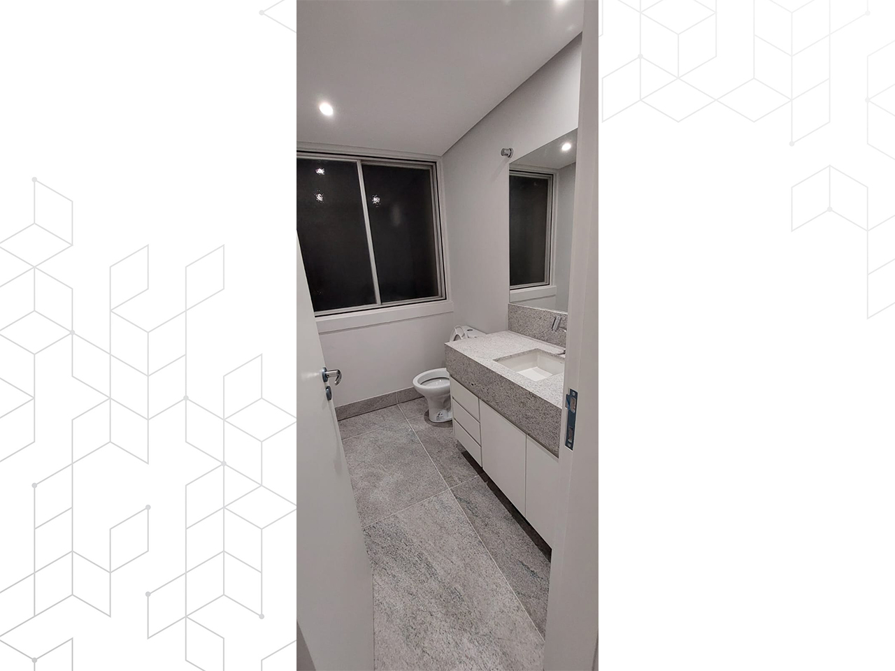 Começamos com a desmontagem cuidadosa das estruturas antigas, preparando o terreno para uma renovação moderna. O piso de granito aqua marine adicionou um toque de elegância, enquanto o forro modular e de gesso proporcionaram um ambiente bem iluminado e acolhedor.